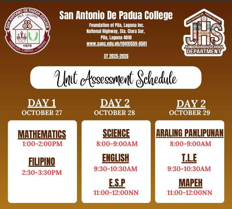 Magandang araw, Grade 11 students! Please be guided by this Final Assessment Schedule.